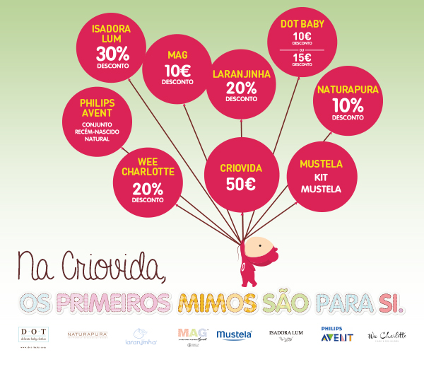 A Criovida sabe que a maternidade é uma altura de grande felicidade. O início de uma fase cheia de alegrias, de amor incondicional, de partilha, de muitas surpresas e descobertas. Por isso, a pensar em si e no seu bebé, preparámos um conjunto de ofertas que a vão deixar ainda mais radiante.Na adesão ao serviço Criovida deixe-se surpreender com os mimos que temos para si.